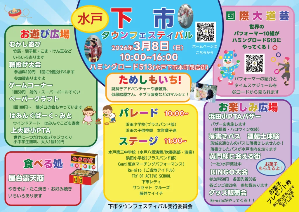 下市タウンフェスティバルは、水戸市本町のハミングロード513を舞台に開催される、地域みんなでつくる一日限りのお祭りです。